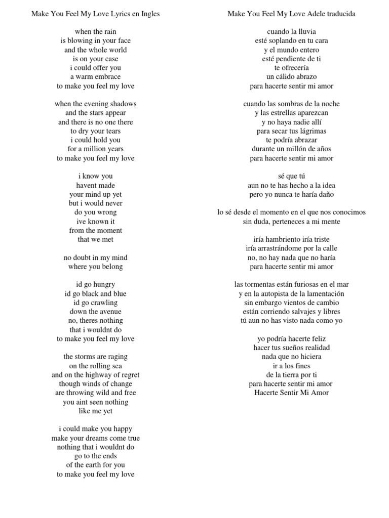 verse ii g d when evening shadows and the stars appear fmaj7 c and there is no one there to dry your tears cm g i could hold you for a million years a7sus2 d7 g to make you feel my love. The lyrics for make you feel my love by adele have been translated into 40 languages. Learn english in a fun way with the music video and the lyrics of the song make you feel my love of adele.
