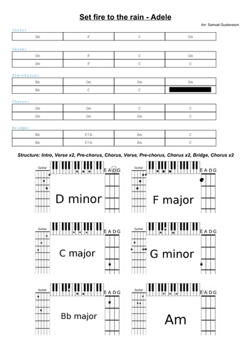 Steven universe ukulele chords the sun has got his huff on helen arney. Adele adkins, fraser t smith copyright: Skyfall 8 adele 4:50256 kbps мастер + бэк. chorus am but i set fire to the rain, g watched it pour as i touched your face, dm7 well, it burned while i cried am g 'cause i heard it screaming out your name, your name!