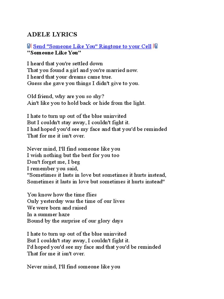 Download Someone Like You Lyrics V Pictures. I wish nothing but the best, for you too. Guess she gave you things i didn't give to you.