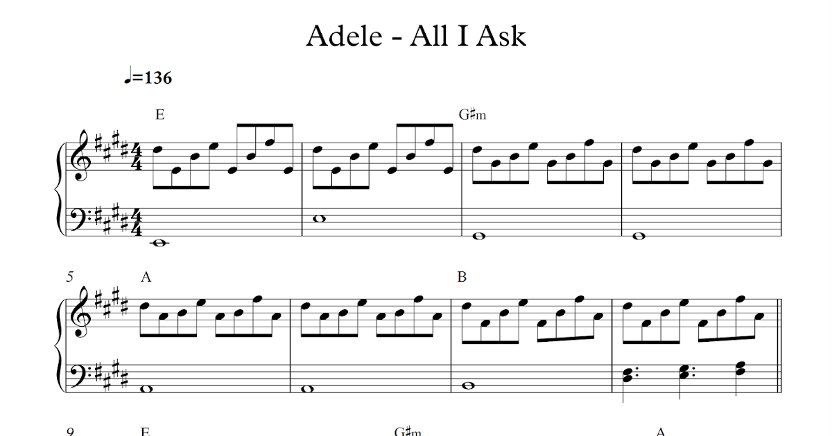 Get Adele All I Ask Piano Sheet Music PNG. Piano sheet is arranged for piano and available in easy and advanced versions. Free sheet music preview of all i ask for voice and piano by adele.